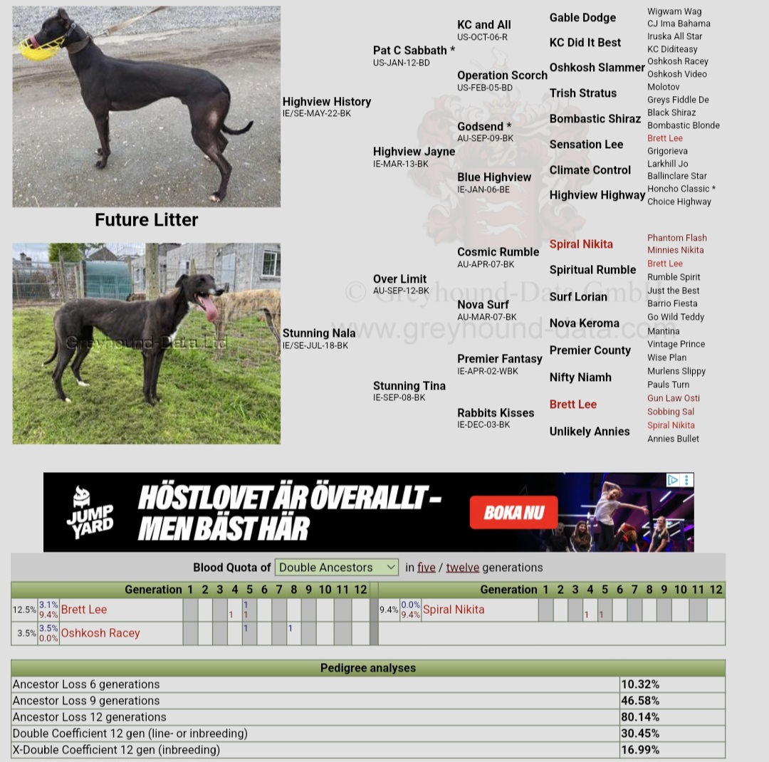 Stunning Nala´s Pappa Over Limit har en kull valpar med Highview Historys mamma Highview Jayne. Den kombinationen resulterade i A1 och S1 avkommor, en tydlig indikation på starka och väl presterade linjer som passar ihop.